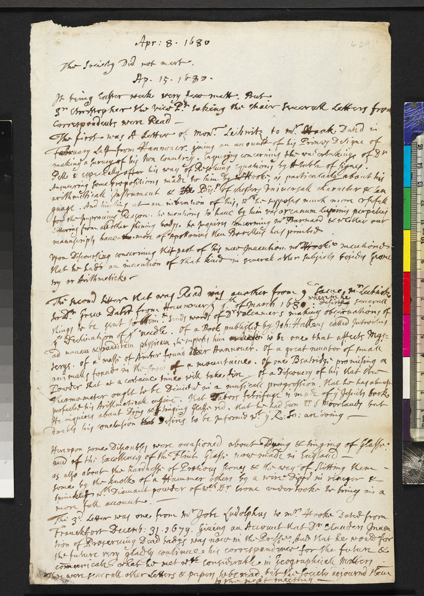 r. Hooke Dated from