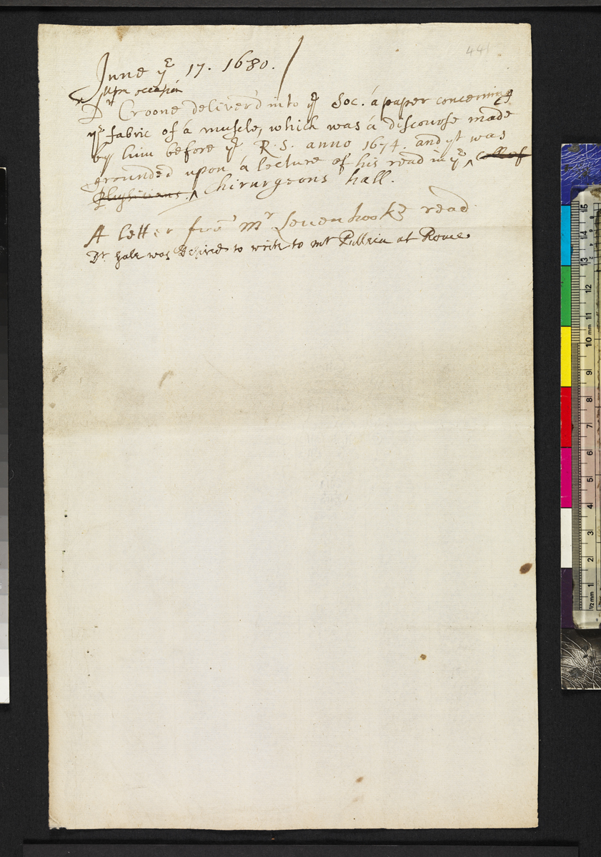 Dr. Croone delivered into the Soc. a paper concerning